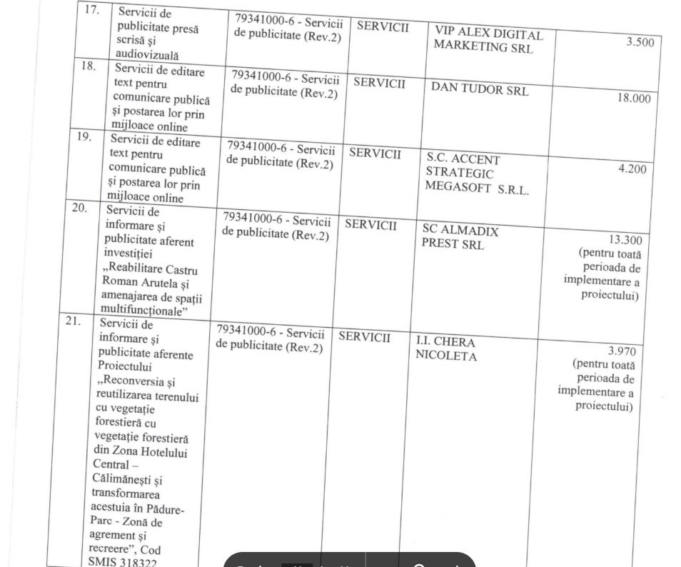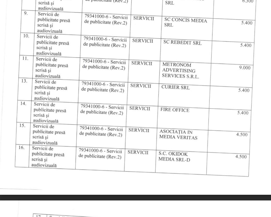 Am făcut o cerere în baza Legii nr. 544/2001 privind liberul acces la informațiile de interes public, cerând contractele de servicii de publicitate în presă scrisă și audiovizuală, servicii de promovare online, servicii de editare text, redactare articole, comunicare publică, servicii de administrare conținut media (site-uri, rețele sociale etc.), indiferent de sursa de finanțare (buget local sau fonduri europene, cu indicarea programului/proiectului), situația plăților efectuate în baza acestor contracte, defalcată pe 2019-2026, cu indicarea sumelor plătite fiecărui prestator și modalitatea de atribuire (achiziție directă / licitație).